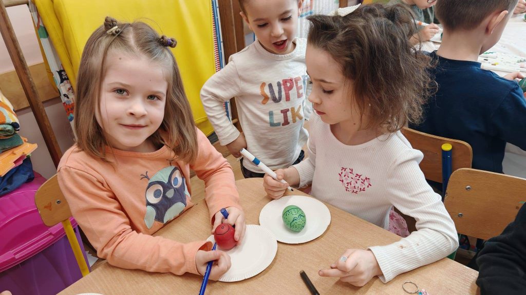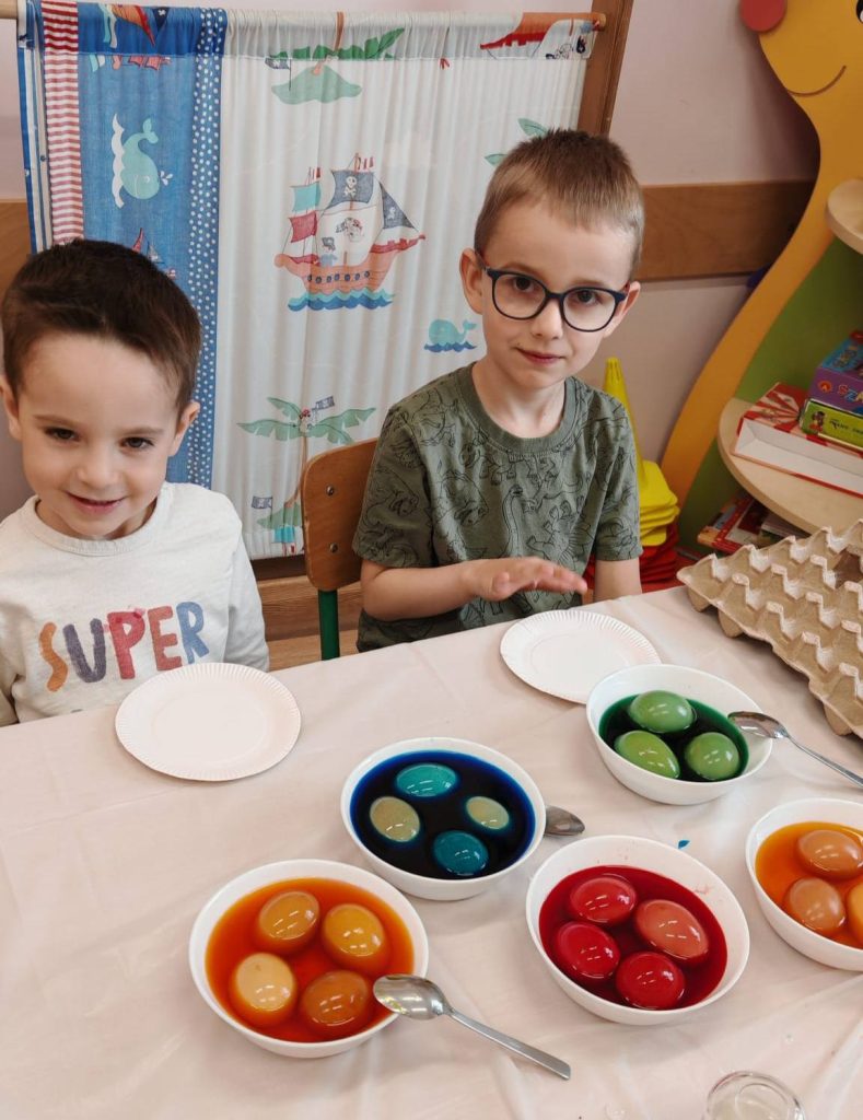 We wtorek, 31.03.2026 r. najmłodsi uczniowie z oddziałów przedszkolnych z ogromnym zaangażowaniem przygotowywali się do tego wyjątkowego czasu. Dzieci ozdabiały kolorowe pisanki, a także z radością farbowały jajka naturalnymi barwnikami, tworząc małe, wielkanocne dzieła sztuki.